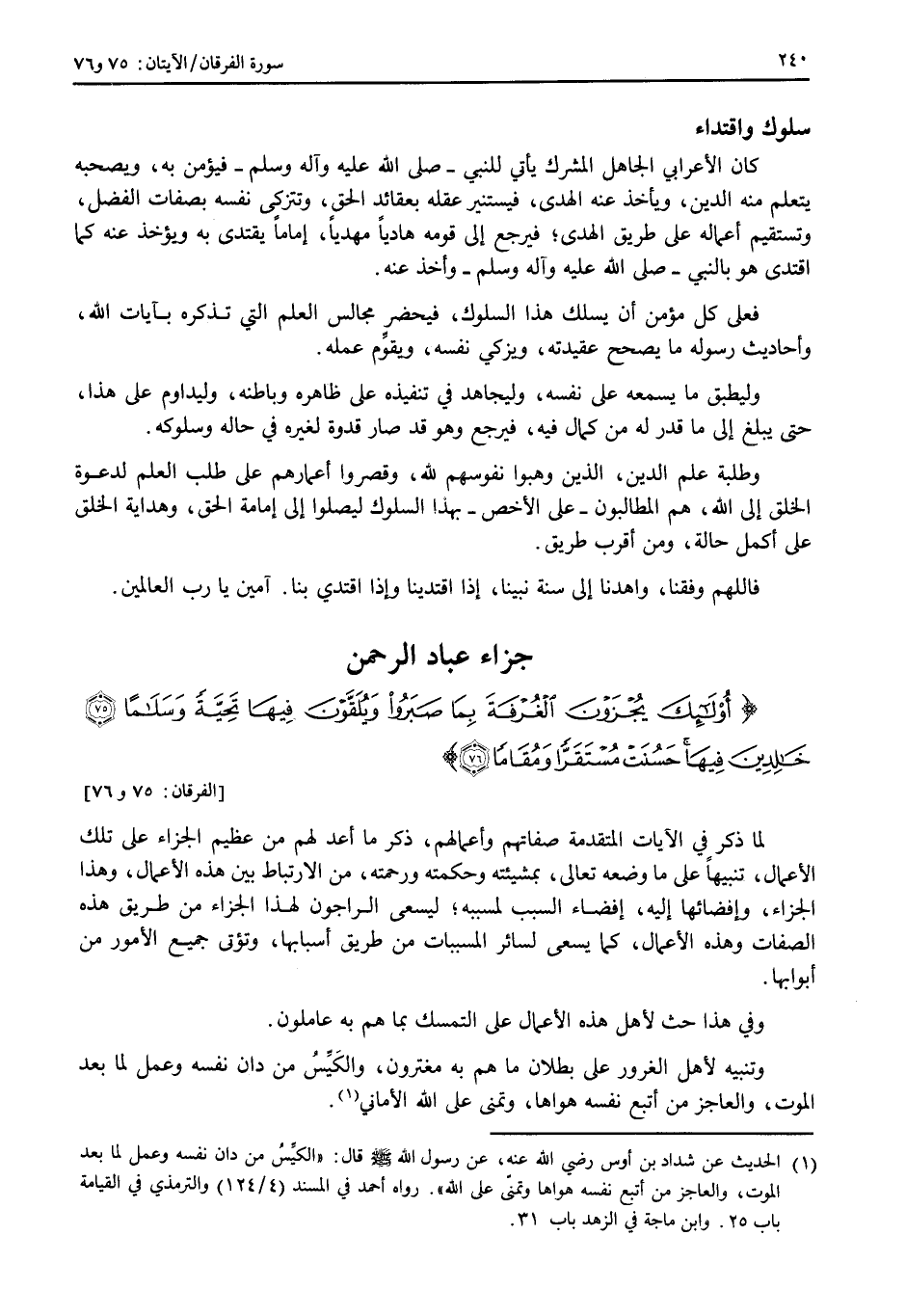 فهذا الحديث بين أن أهل الغرف هم أكمل المؤمنين، وأعلاهم درجة في الجنة بهذا المقدار من البعد، فهم الموصوفون بالصفات المذكورة في الآية المتقدمة على أتمها.