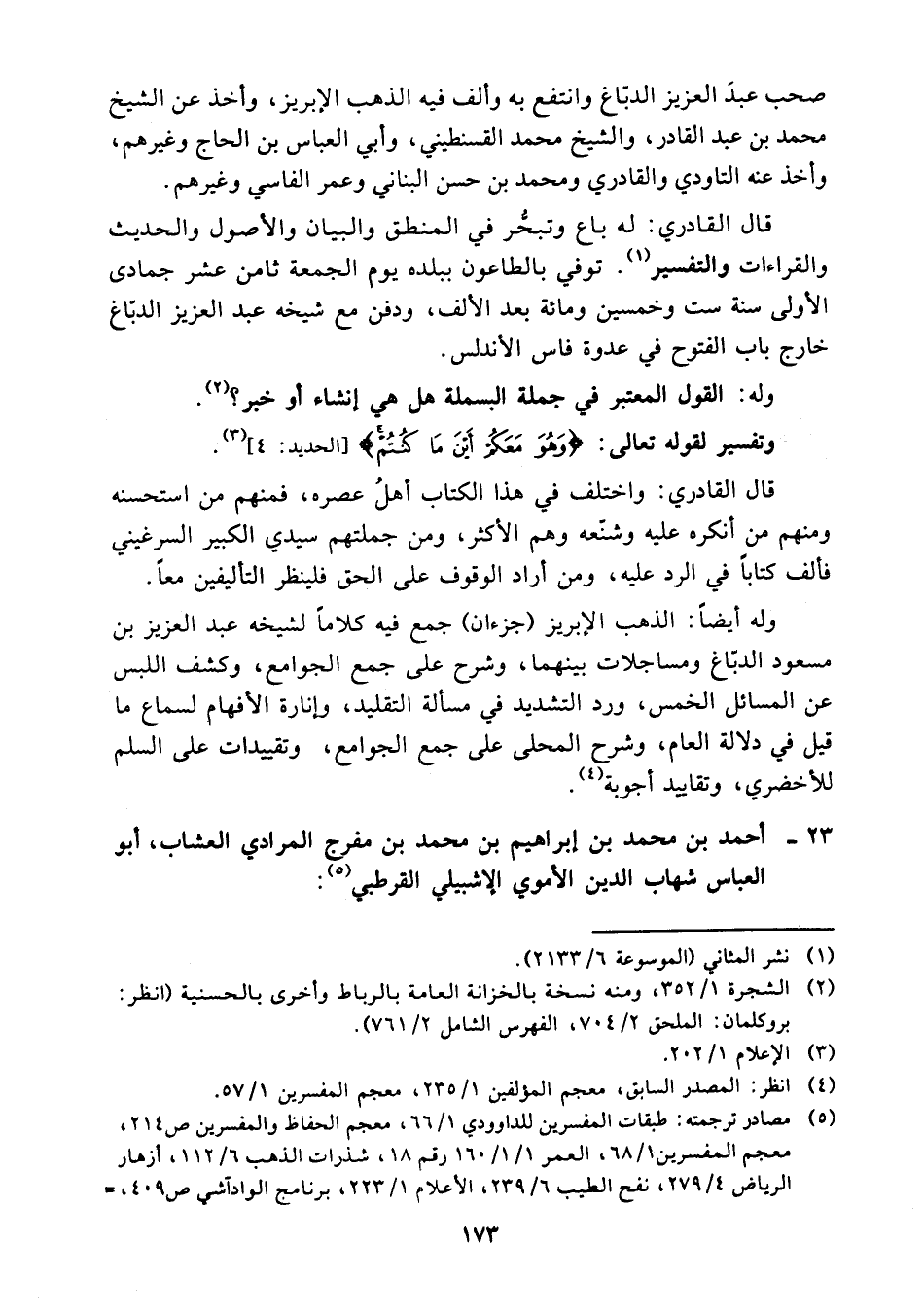(¬5) انظر المصدر السابق، معجم المؤلفين 1/ 235، معجم المفسرين 1/ 57.