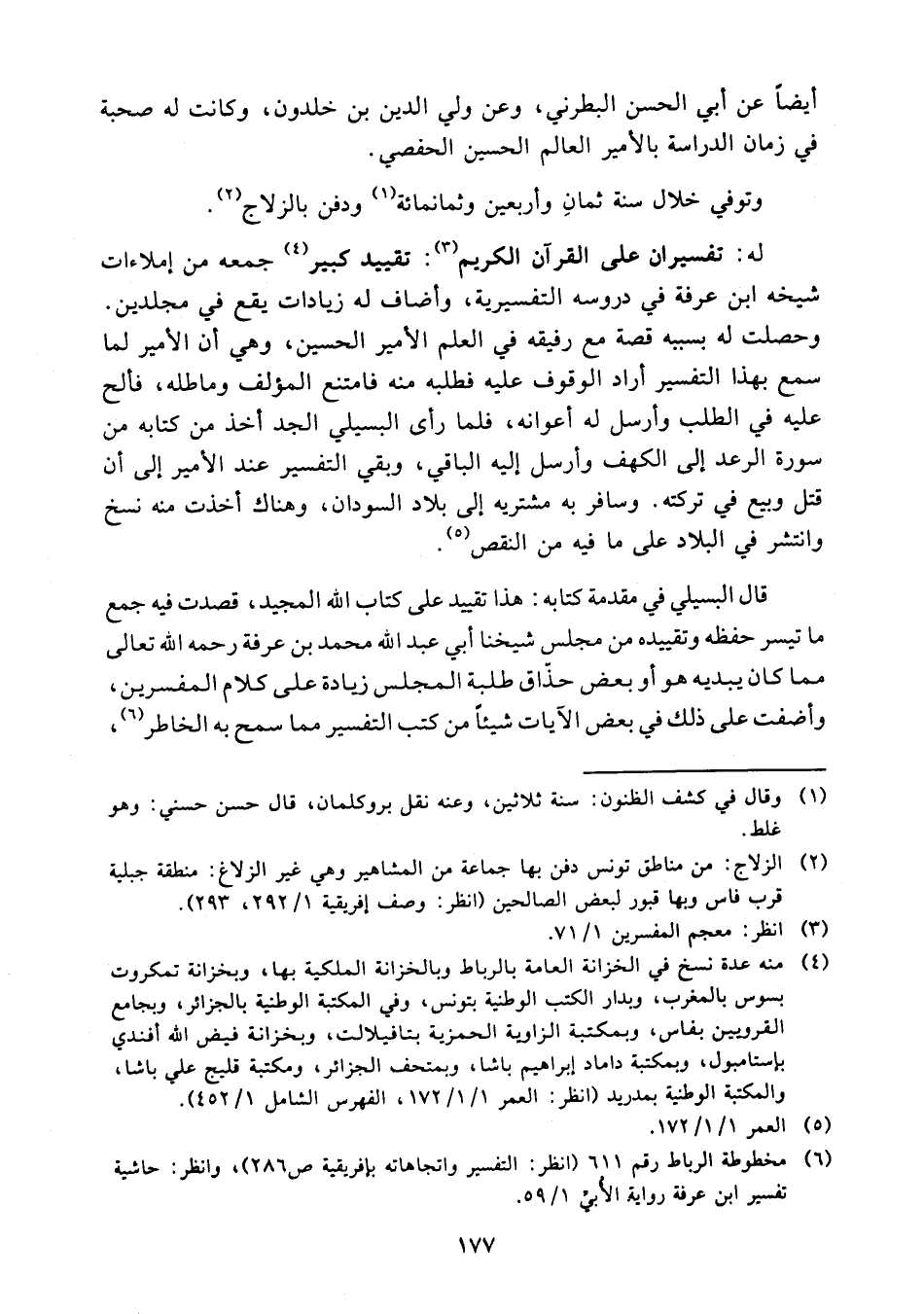 (¬6) مخطوطة الرباط رقم 611 (انظر التفسير واتجاهاته بإفريقية ص: 286)، وانظر حاشية تفسير ابن عرفة رواية الأبي 1/ 59.