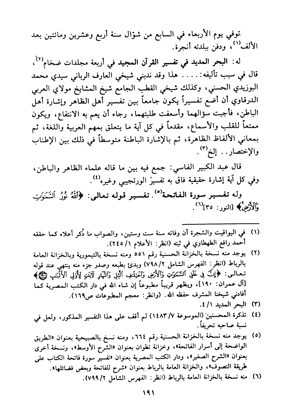 (¬6) النور: 35 منه نسخة بالخزانة العامة بالرباط (انظر الفهرس الشامل 2/ 799).