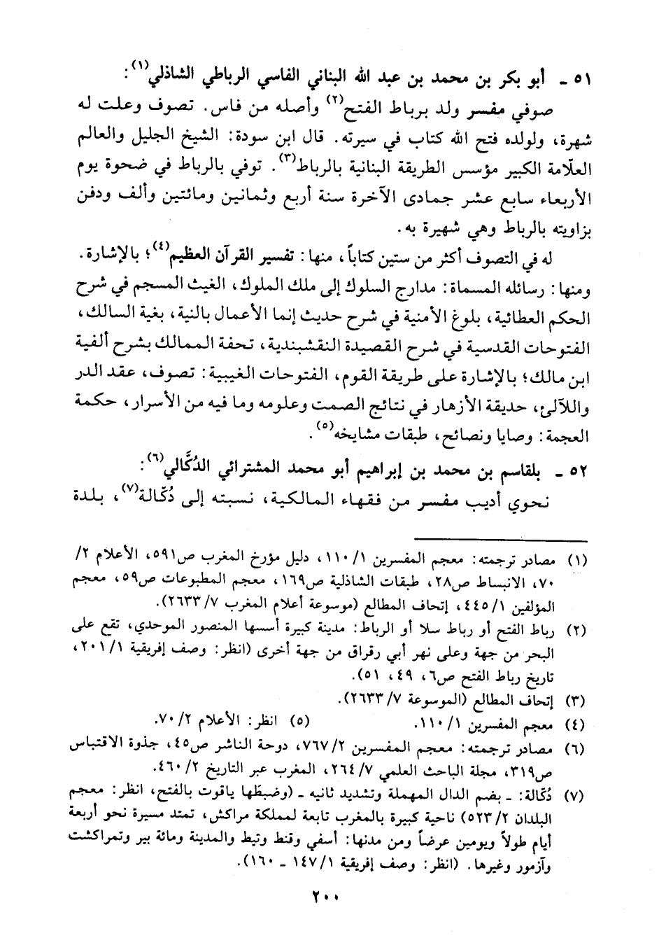 (¬1) مصادر ترجمته: معجم المفسرين 1/ 110، دليل مؤرخ المغرب 591، الأعلام 2/ 70، الانبساط 28، طبقات الشاذلية 169، معجم المطبوعات 592، معجم المؤلفين 1/ 445، إتحاف المطالع (موسوعة أعلام المغرب 7/ 2633).