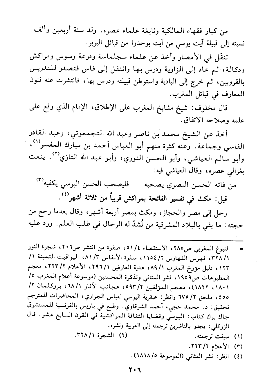 قال مخلوف: شيخ مشايخ المغرب على الإطلاق الإمام الذي وقع على علمه وصلاحه الاتفاق.