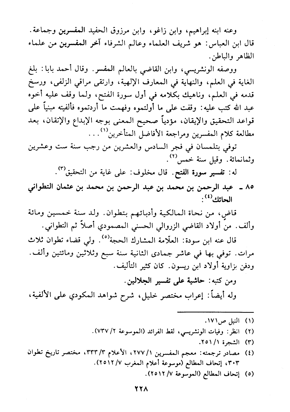 (¬4) مصادر ترجمته: معجم المفسرين 1/ 277، الأعلام 3/ 333، مختصر تاريخ تطوان 303، إتحاف المطالع (موسوعة أعلام المغرب 7/ 2512).