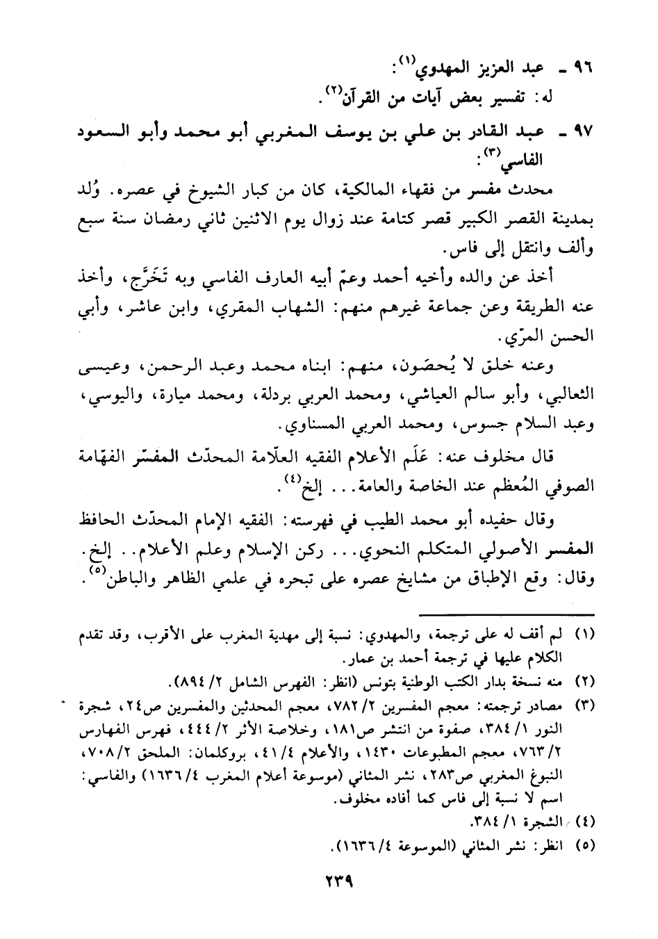 (¬3) مصادر ترجمته: معجم المفسرين 2/ 782، معجم المحدثين والمفسرين 24، شجرة النور1/ 384، صفوة من انتشر 181، وخلاصة الأثر 2/ 444، فهرس الفهارس 2/ 763، معجم المطبوعات 1430، والأعلام 4/ 41، بروكلمان: الملحق2/ 708، النبوع المغربي 283، نشر المثاني (موسوعة أعلام المغرب 4/ 1636) والفاسي: اسم لا نسبة إلى فاس كما أفاده مخلوف.