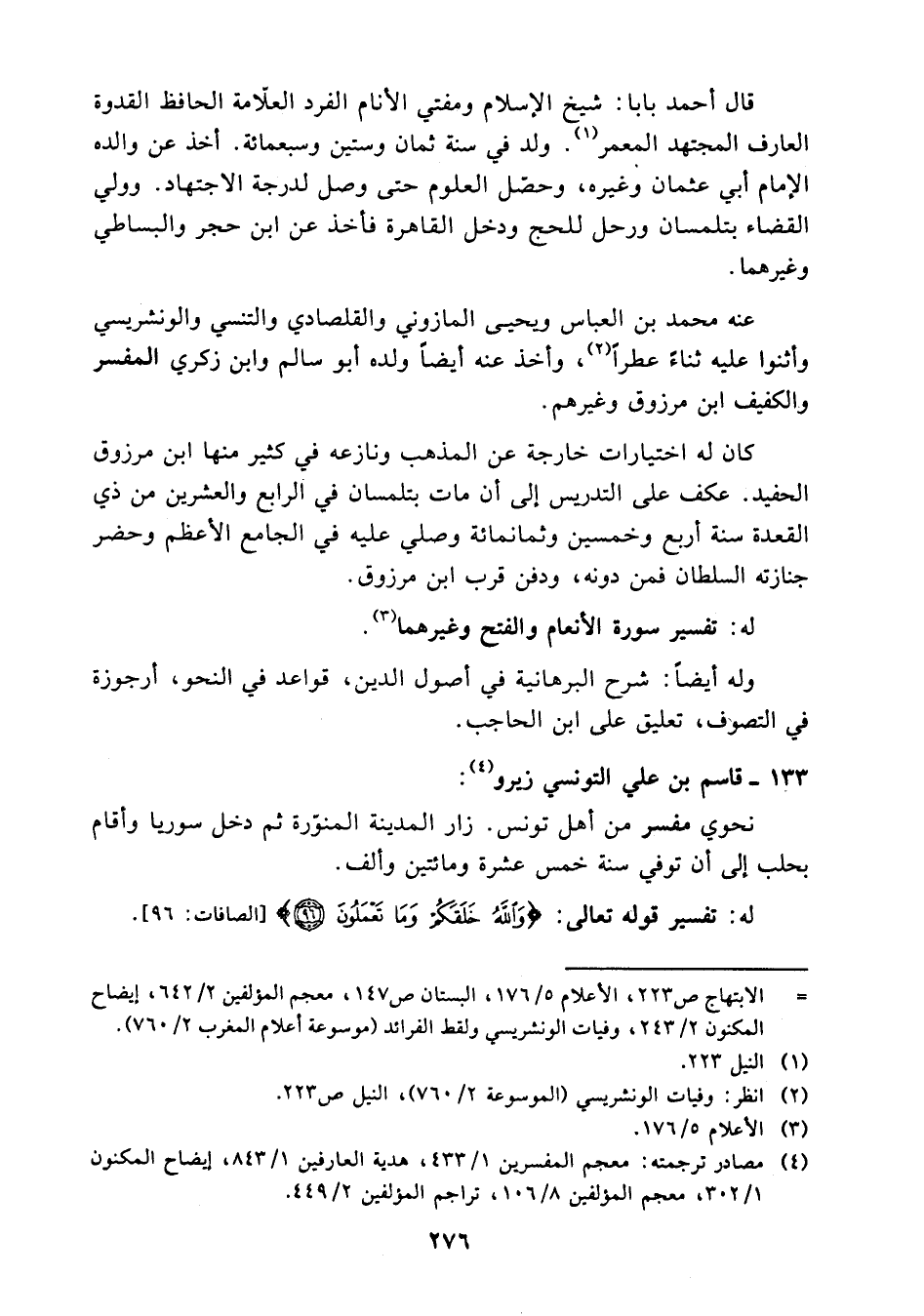 (¬2) انظر وفيات الونشريسي (الموسوعة 2/ 760)، النيل 223.