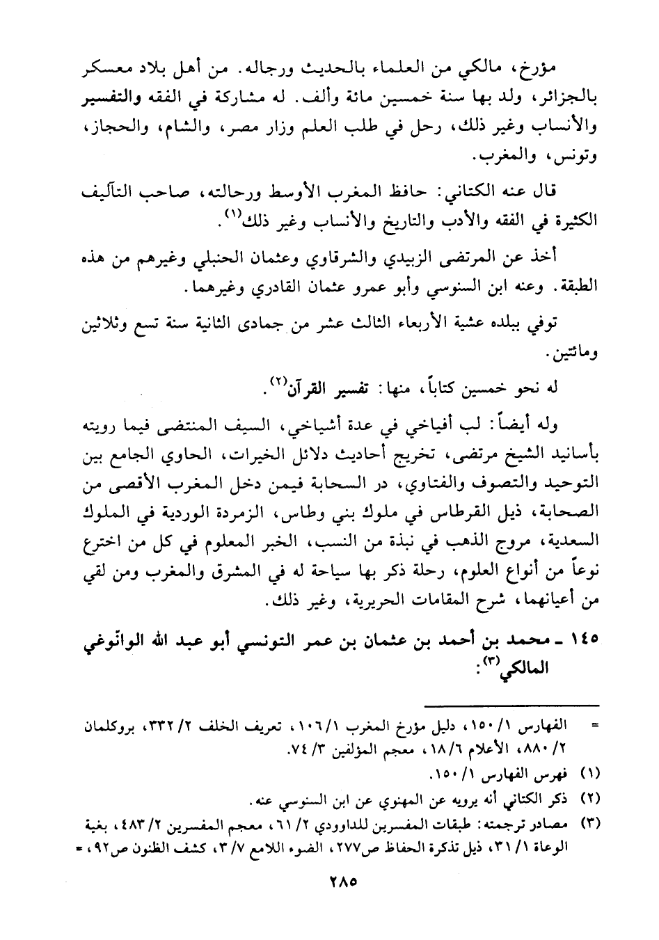 145 - محمد بن أحمد بن عثمان بن عمر التونسي أبو عبد الله الوانّوغي المالكي (¬3)