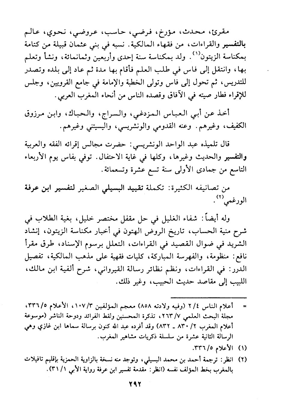 (¬2) انظر ترجمة أحمد بن محمد البسيلي، وتوجد منه نسخة بالزاوية الحمزية بإقليم تافيلات بالمغرب بخط المؤلف نفسه (انظر مقدمة تفسير ابن عرفة رواية الأبي 1/ 31).
