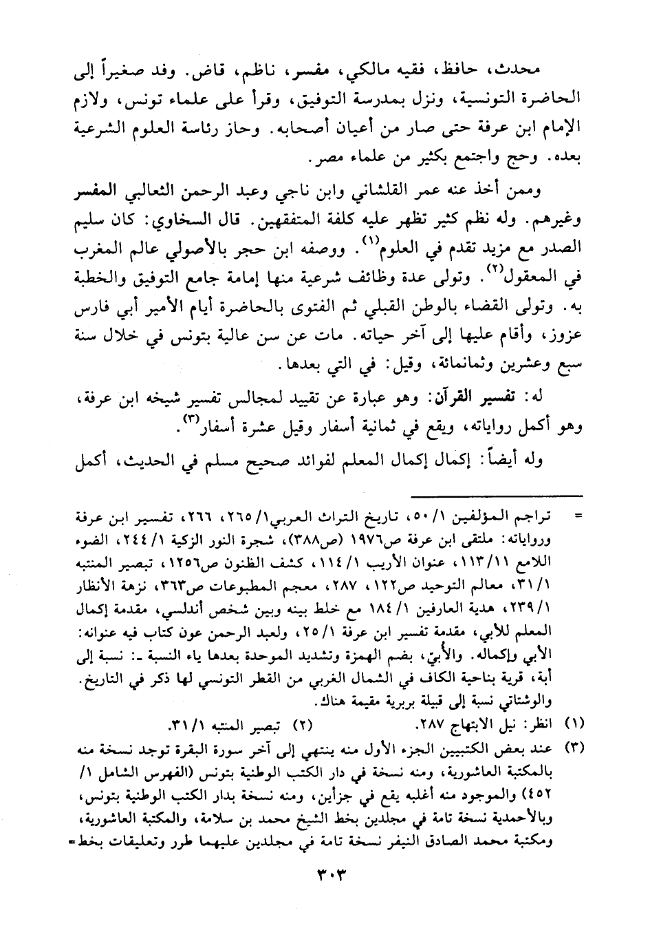 تفسير القرآن: وهو عبارة عن تقييد لمجالس تفسير شيخه ابن عرفة وهو أكمل رواياته ويقع في ثمانية أسفار وقيل عشرة أسفار. (¬3)