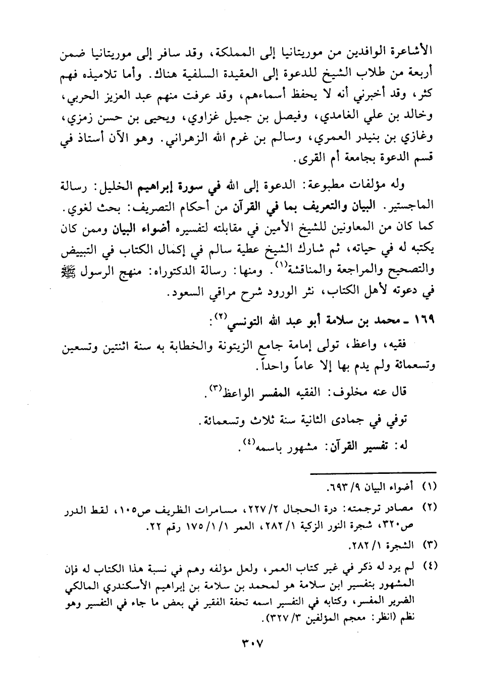 (¬4) لم يرد له ذكر في غير كتاب العمر ولعل مؤلفه وهم في نسبة هذا الكتاب له فإن المشهور بتفسير ابن سلامة هو لمحمد بن سلامة بن إبراهيم الأسكندري المالكي الضرير المفسر وكتابه في التفسير اسمه تحفة الفقير في بعض ماجاء في التفسير وهو نظم (انظر معجم المؤلفين 3/ 327).