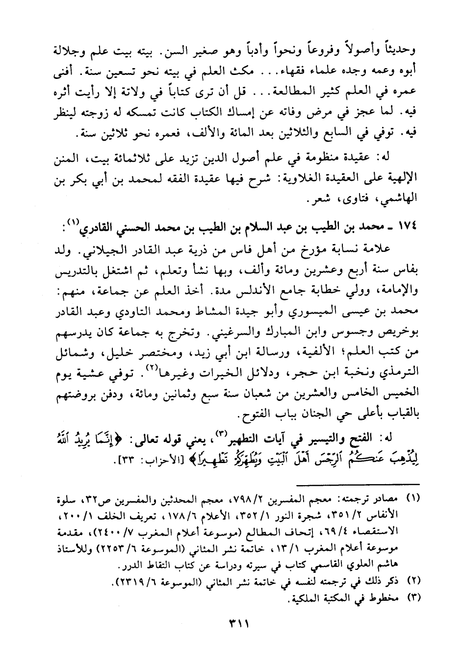 174 - محمد بن الطيب بن عبد السلام بن الطيب بن محمد الحسني القادري (¬1)
