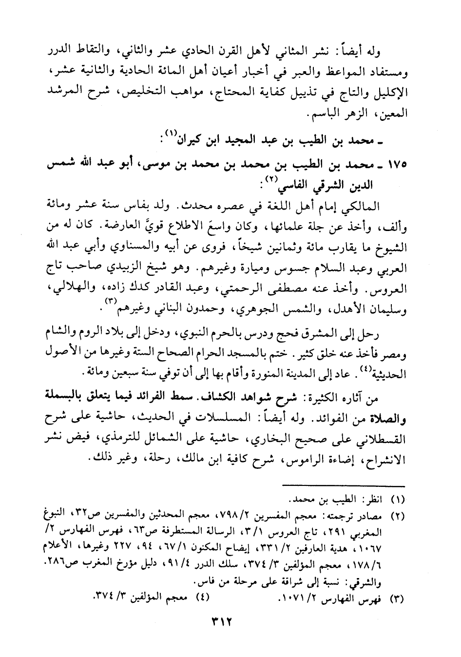 (¬2) مصادر ترجمته: معجم المفسرين 2/ 798، معجم المحدثين والمفسرين 32، النبوغ المغربي 291، تاج العروس 1/ 3، الرسالة المستطرفة 63، فهرس الفهارس 2/ 1067، هدية العارفين 2/ 331، إيضاح المكنون 1/ 67، 94، 227 وغيرها، الأعلام 6/ 178، معجم المؤلفين3/ 374، سلك الدرر 4/ 91، دليل مؤرخ المغرب 286.