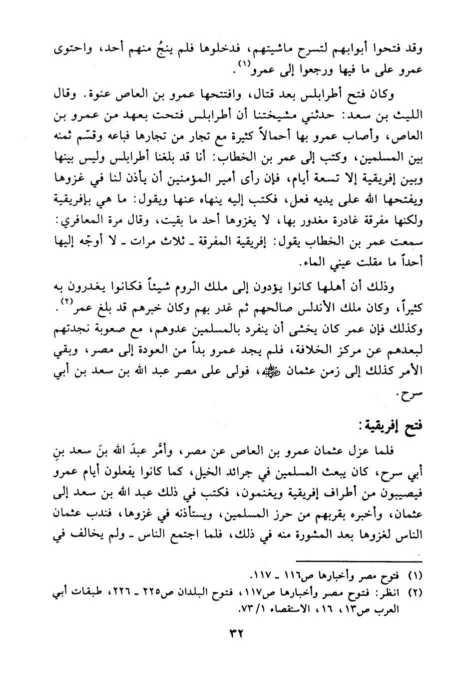 (¬2) انظر فتوح مصر وأخبارها ص: 117، فتوح البلدان 225 - 226، طبقات أبي العرب 13، 16، الاستقصا1/ 73.