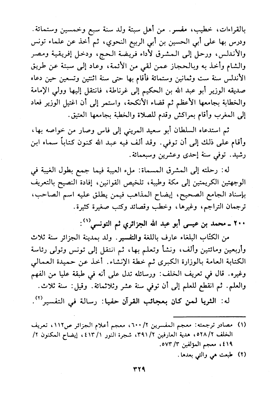 (¬1) مصادر ترجمته: معجم المفسرين 2/ 600، معجم أعلام الجزائر 112، تعريف الخلف 2/ 528، هدية العارفين 2/ 391، شجرة النور 1/ 413، إيضاح المكنون 2/ 419، معجم المؤلفين 3/ 573.