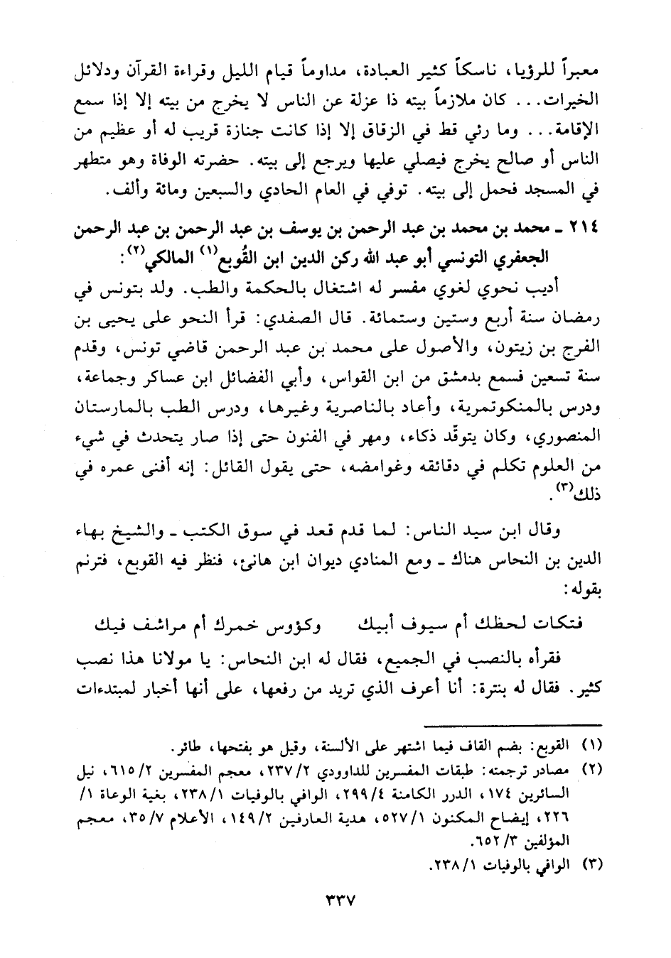 214 - محمد بن محمد بن عبد الرحمن بن يوسف بن عبد الرحمن بن عبدالرحمن الجعفري التونسي أبو عبد الله ركن الدين ابن القوبع (¬1) المالكي (¬2)