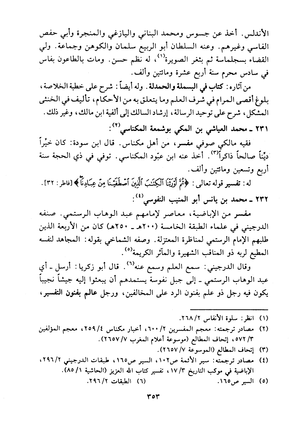 (¬5) مصادر ترجمته: سير الأئمة ص: 102، السير ص: 165، طبقات الدرجيني 2/ 296، الإباضية في موكب التاريخ 3/ 17، تفسير كتاب الله العزيز (الحاشية 1/ 85).