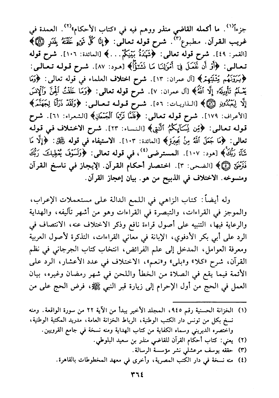 (¬1) الخزانة الحسنية رقم 945، المجلد الأخير يبدأ من الآية 22من سورة الواقعة ومنه نسخ بكل من تونس دار الكتب الوطنية، الرباط الخزانة العامة، مدريد المكتبة الوطنية، واختصره الديريني وسماه الكفاية من كتاب الهداية ومنه نسخة في جامع القرويين.