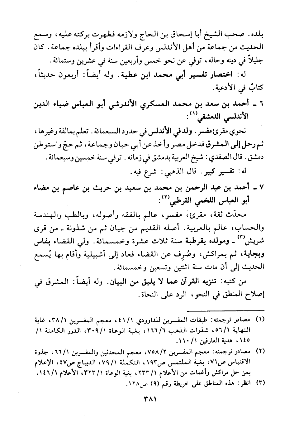(¬1) مصادر ترجمته: طبقات المفسرين للداوودي 1/ 41، معجم المفسرين 1/ 38، غاية النهاية 1/ 56، شذرات الذهب 6/ 166، بغية الوعاة 1/ 309، الدرر الكامنة 1/ 145، هدية العارفين 1/ 110.