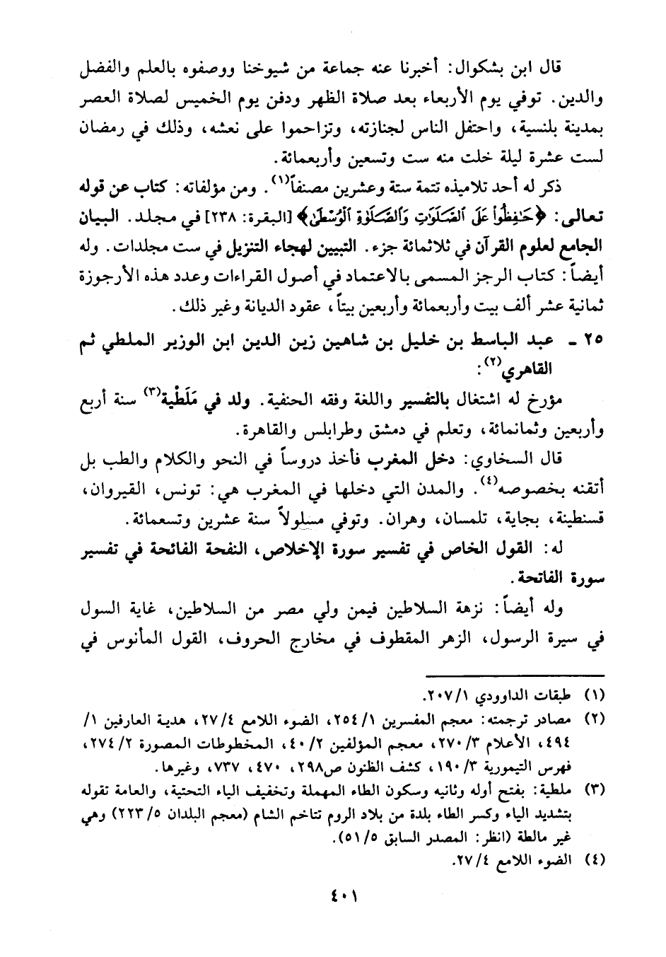 (¬3) مصادر ترجمته: معجم المفسرين 1/ 254، الضوء اللامع 4/ 27، هدية العارفين