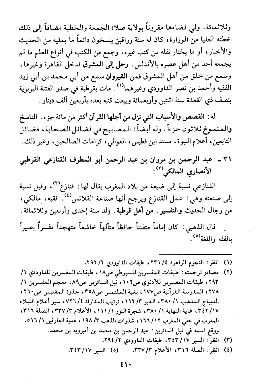 (¬2) مصادر ترجمته: طبقات المفسرين للسيوطي 18، طبقات المفسرين للداوددي 1/ 293، طبقات المفسرين للأدنوي ص: 102، نيل السائرين ص: 89، معجم المفسرين 1/ 278، المدرسة القرآنية ص: 177، بغية الملتمس 358، جذوة المقتبس 260، الديباج المذهب 1/ 380، العبر 3/ 112، ترتيب المدارك 4/ 726، سير أعلام النبلاء 17/ 342، غاية النهاية 1/ 380، شجرة النور 1/ 111، الأعلام 3/ 337، الصلة 316، المغرب في حلي المغرب 12/ 166، شذرات الذهب 3/ 198، هدية العارفين 1/ 516.