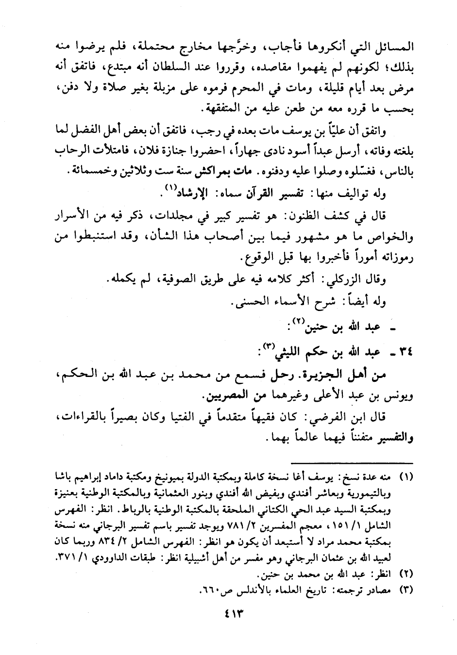(¬1) منه عدة نسخ: يوسف أغا نسخة كاملة وبمكتبة الدولة بميونيخ ومكتبة داماد إبراهيم باشا وبالتيمورية وبعاشر أفندي وبفيض الله أفندي وبنور العثمانية وبالمكتبة الوطنية بعنيزة وبمكتبة السيد عبد الحي الكتاني الملحقة بالمكتبة الوطنية. بالرباط انظر الفهرس الشامل 1/ 151، معجم المفسرين 2/ 781 ويوجد تفسير باسم تفسير البرجاني منه نسخة بمكتبة محمد مراد لا أستبعد أن يكون هو انظر الفهرس الشامل 2/ 834 وربما كان لعبيد الله بن عثمان البرجاني وهو مفسر من أهل أشبيلية انظر طبقات الداوودي 1/ 371.