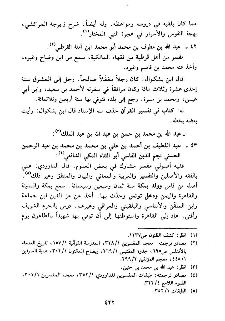 (¬2) مصادر ترجمته: معجم المفسرين 1/ 328، المدرسة القرآنية 1/ 157، تاريخ العلماء بالأندلس 695، جذوة المقتبس 1/ 269، إيضاح المكنون 1/ 302، هدية العارفين 1/ 445، معجم المؤلفين 2/ 299.