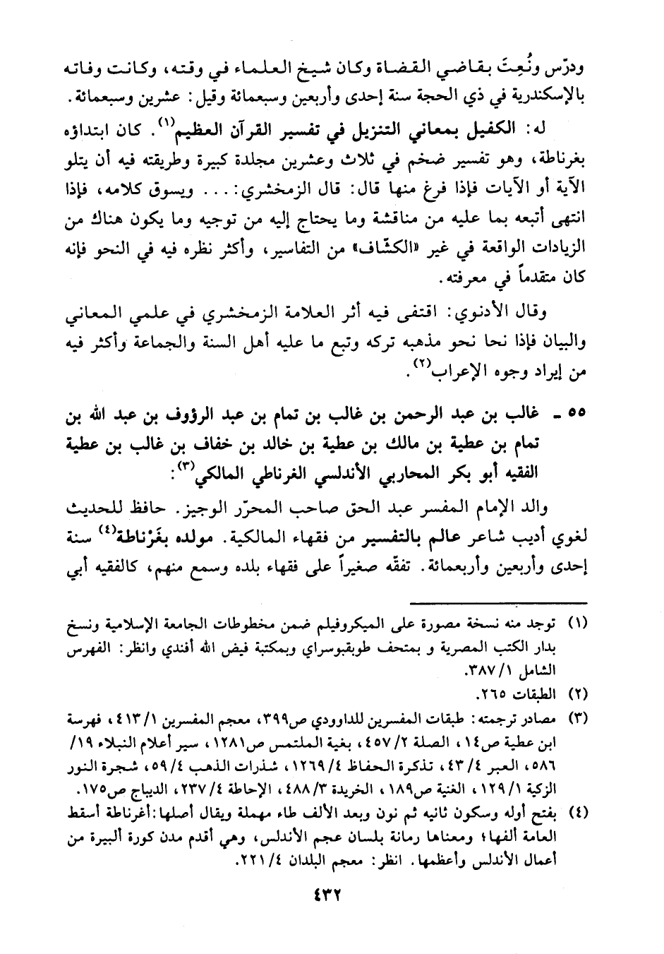 (¬3) مصادر ترجمته: طبقات المفسرين للداوودي 399، معجم المفسرين 1/ 413، فهرسة ابن عطية 14، الصلة 2/ 457، بغية الملتمس 1281، سير أعلام النبلاء 19/ 586، العبر 4/ 43، تذكرة الحفاظ 4/ 1269، شذرات الذهب 4/ 59، شجرة النور الزكية 1/ 129، الغنية 189، الخريدة 3/ 488، الإحاطة 4/ 237، الديباج 175.