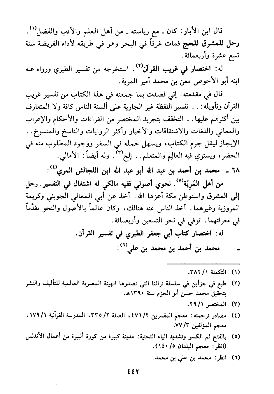 (¬4) مصادر ترجمته: معجم المفسرين 2/ 476، الصلة 2/ 335، المدرسة القرآنية 1/ 179، معجم المؤلفين 3/ 77.