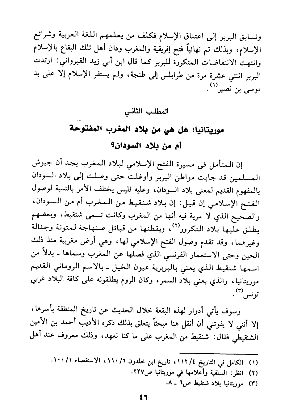 المطلب الثاني: في موريتانيا؛ هل هي من بلاد المغرب المفتوحة أم من بلاد السودان؟: