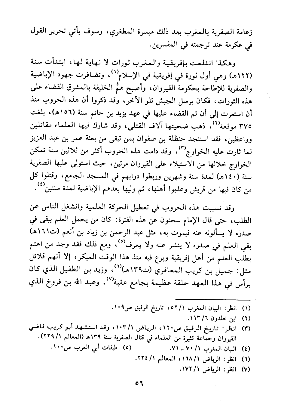 زعامة الصفرية بالمغرب بعد ذلك ميسرة المطغري وسوف يأتي تحرير القول في عكرمة عند ترجمته في المفسرين.