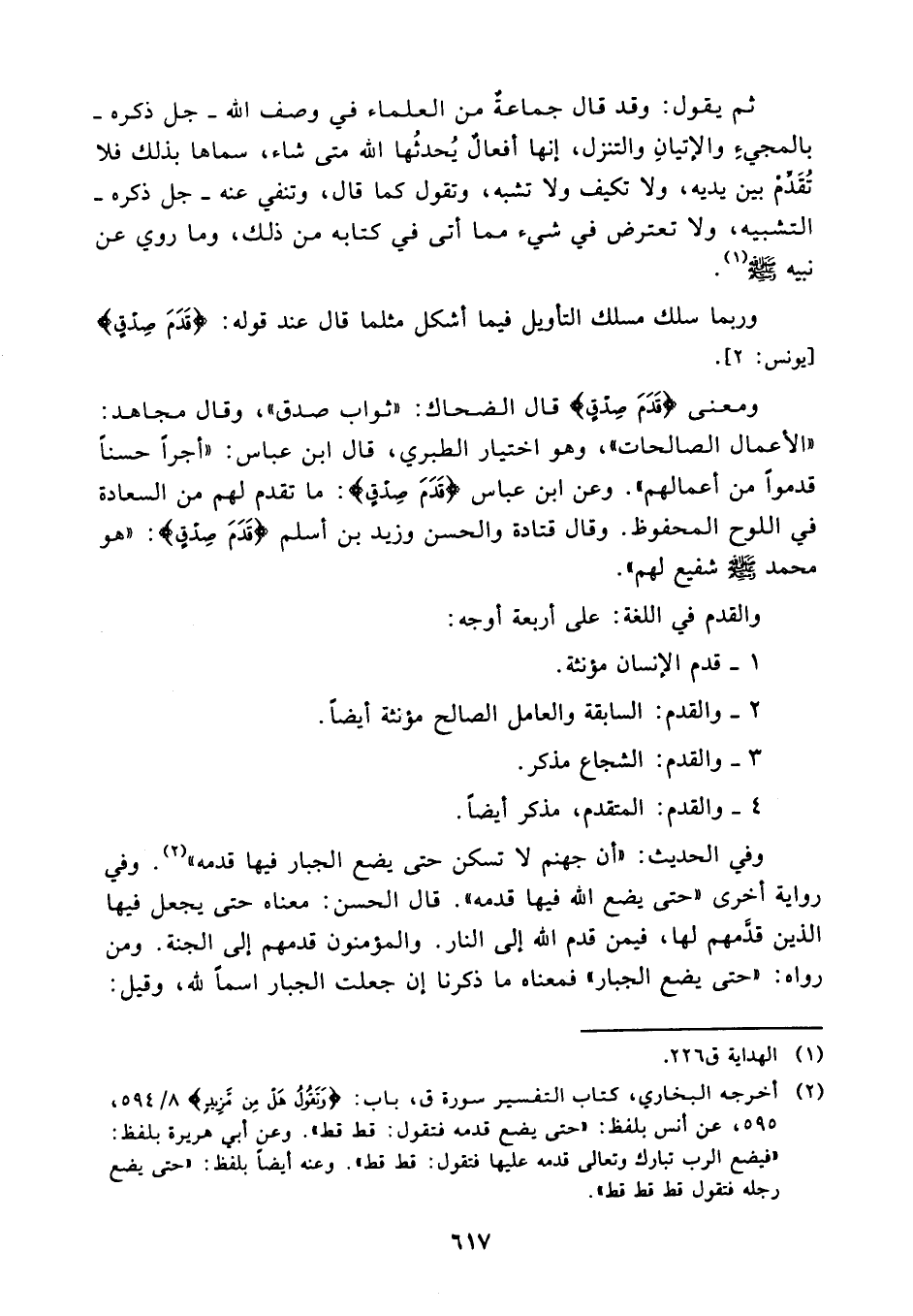 2 - والقدم: السابقة والعامل الصالح مؤنثة أيضًا.