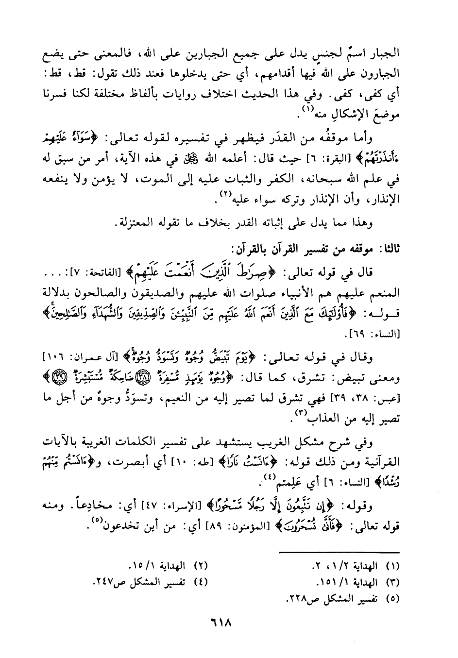وأما موقفه من القدر فيظهر في تفسيره لقوله تعالى: {سواء عليهم ءأنذرتهم} (¬2) حيث قال: أعلمه الله عز وجل في هذه الآية، أمر من سبق له في علم الله سبحانه، الكفر والثبات عليه إلى الموت، لايؤمن ولا ينفعه الإنذار، وأن الإنذار وتركه سواء عليه (¬3).