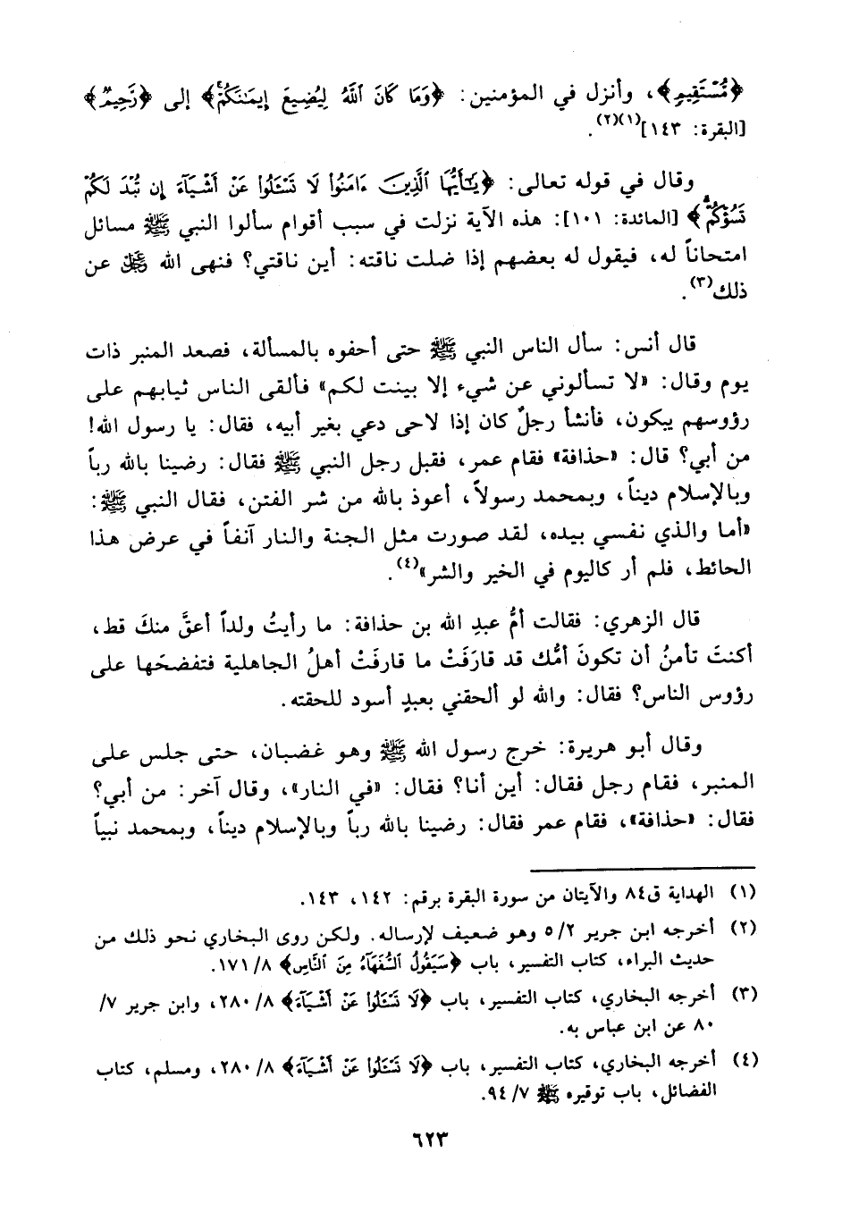 (¬4) أخرجه البخاري - كتاب التفسير - باب {لاتسألوا عن أشياء} 8/ 280 وابن جرير 7/ 80 عن ابن عباس به.