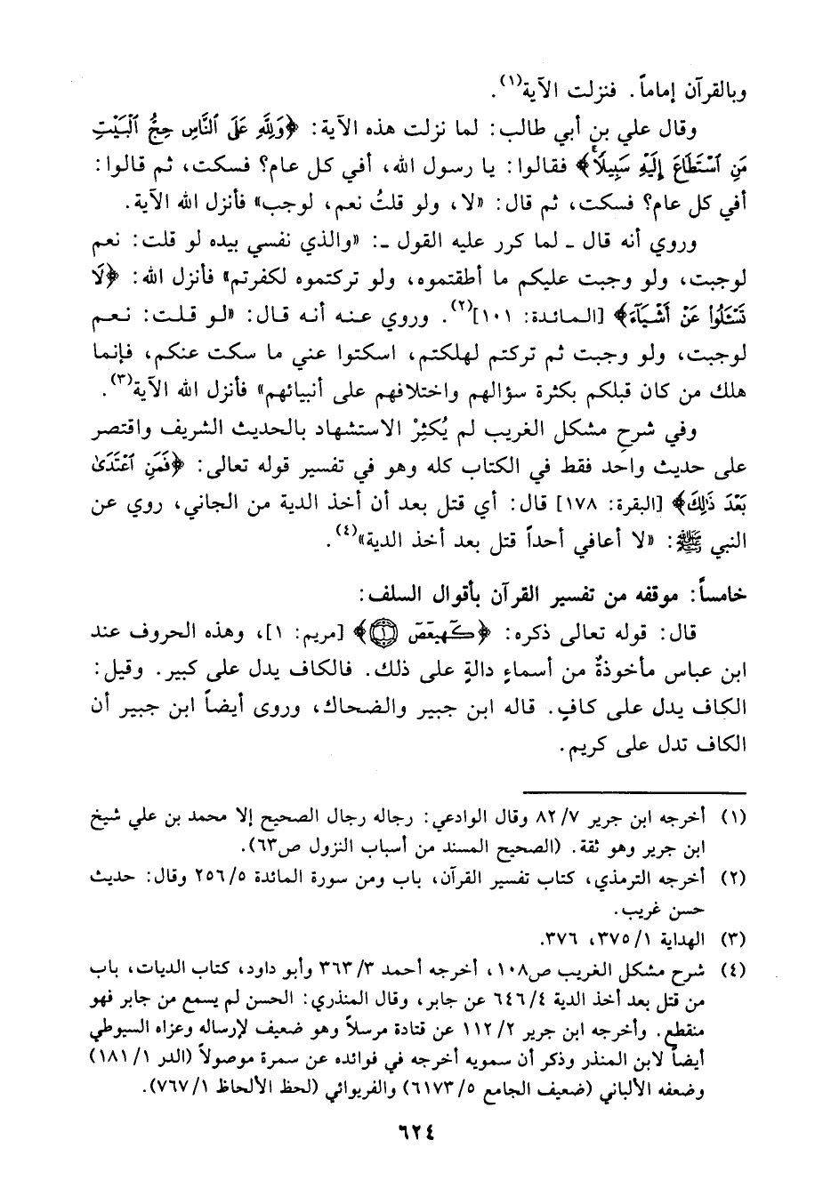 (¬5) شرح مشكل الغريب ص: 108، أخرجه أحمد 3/ 363 وأبو داود - كتاب الديات - باب من قتل بعد أخذ الدية 4/ 646 عن جابر، وقال المنذري: الحسن لم يسمع من جابر فهو منقطع. وأخرجه ابن جرير 2/ 112 عن قتادة مرسلاً وهو ضعيف لإرساله وعزاه السيوطي أيضًا لابن المنذر وذكر أن سمويه أخرجه في فوائده عن سمرة موصولاً (الدر 1/ 181) وضعفه الألباني (ضعيف الجامع 5/ 6173) والفريوائي (لحظ الألحاظ 1/ 767).