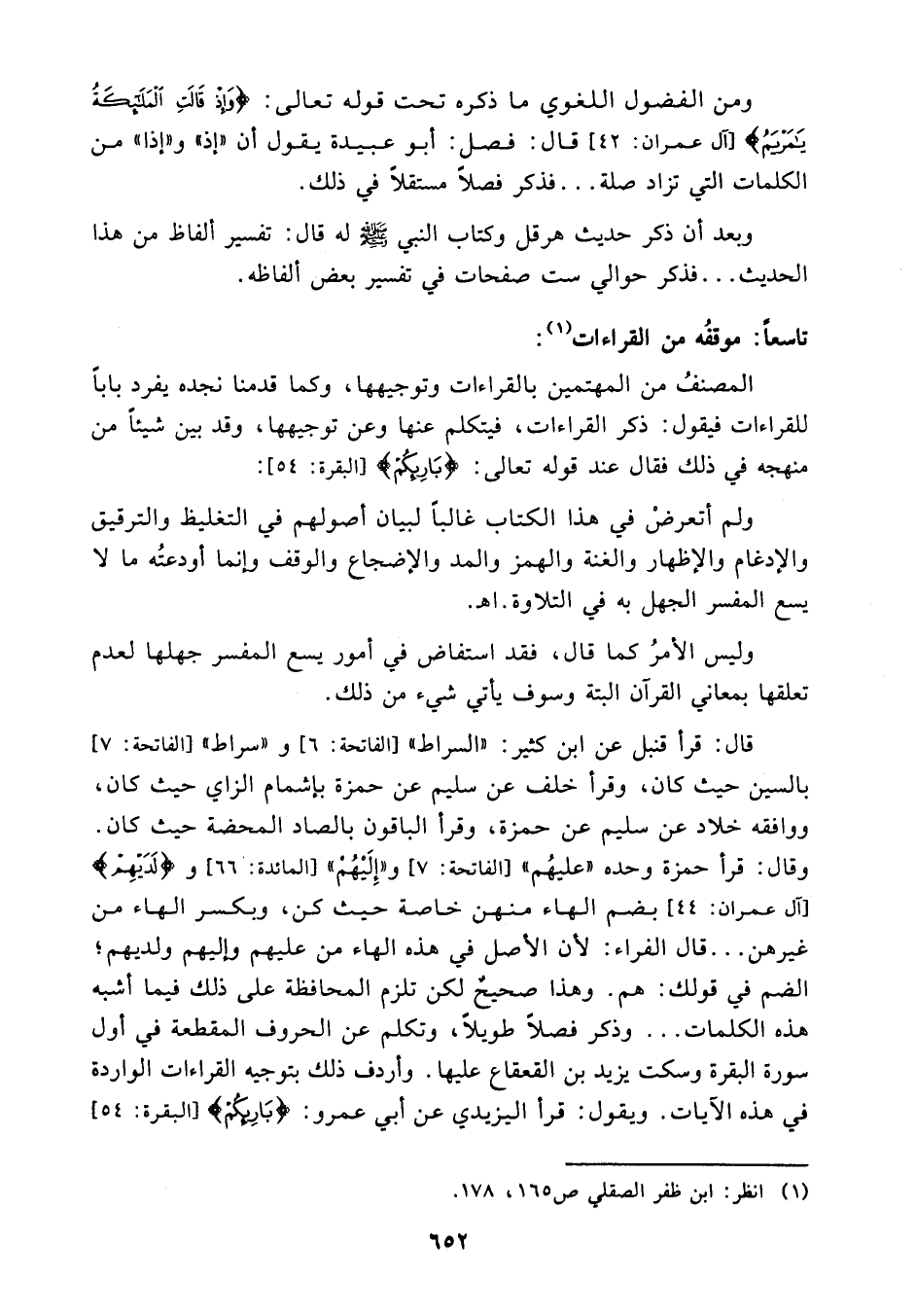 المصنف من المهتمين بالقراءات وتوجيهها وكما قدمنا نجده يفرد بابا للقراءات فيقول: