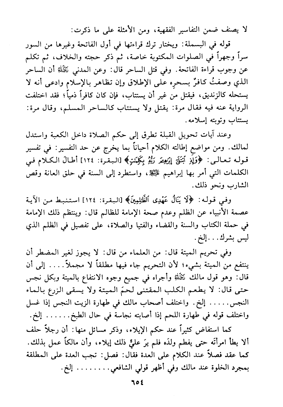وفي قوله {لا ينال عهدي الظالمين} (¬2) استنبط من الآية عصمة الأنبياء عن الظلم وعدم صحة الإمامة للظالم قال: وينتظم ذلك الإمامة في حملة الكتاب والسنة والقضاء والفتيا والصلاة، على تفصيل في الظلم الذي ليس بشرك ... الخ