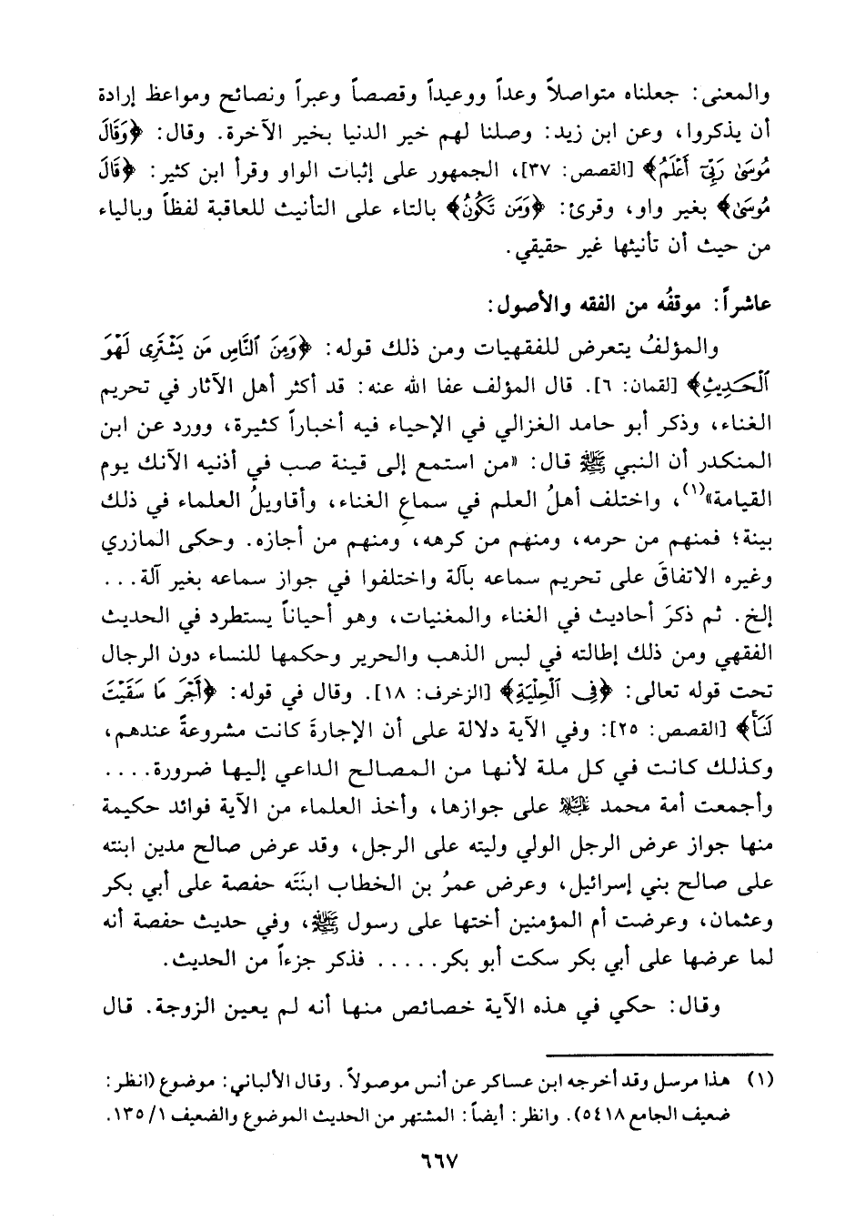 وهو أحيانا يستطرد في الحديث الفقهي ومن ذلك إطالته في لبس الذهب والحرير وحكمها للنساء دون الرجال تحت قوله تعالى {في الحلية} (¬4)