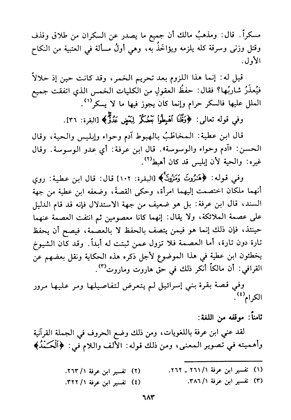 (¬1) تفسير ابن عرفة 1/ 261 - 262.