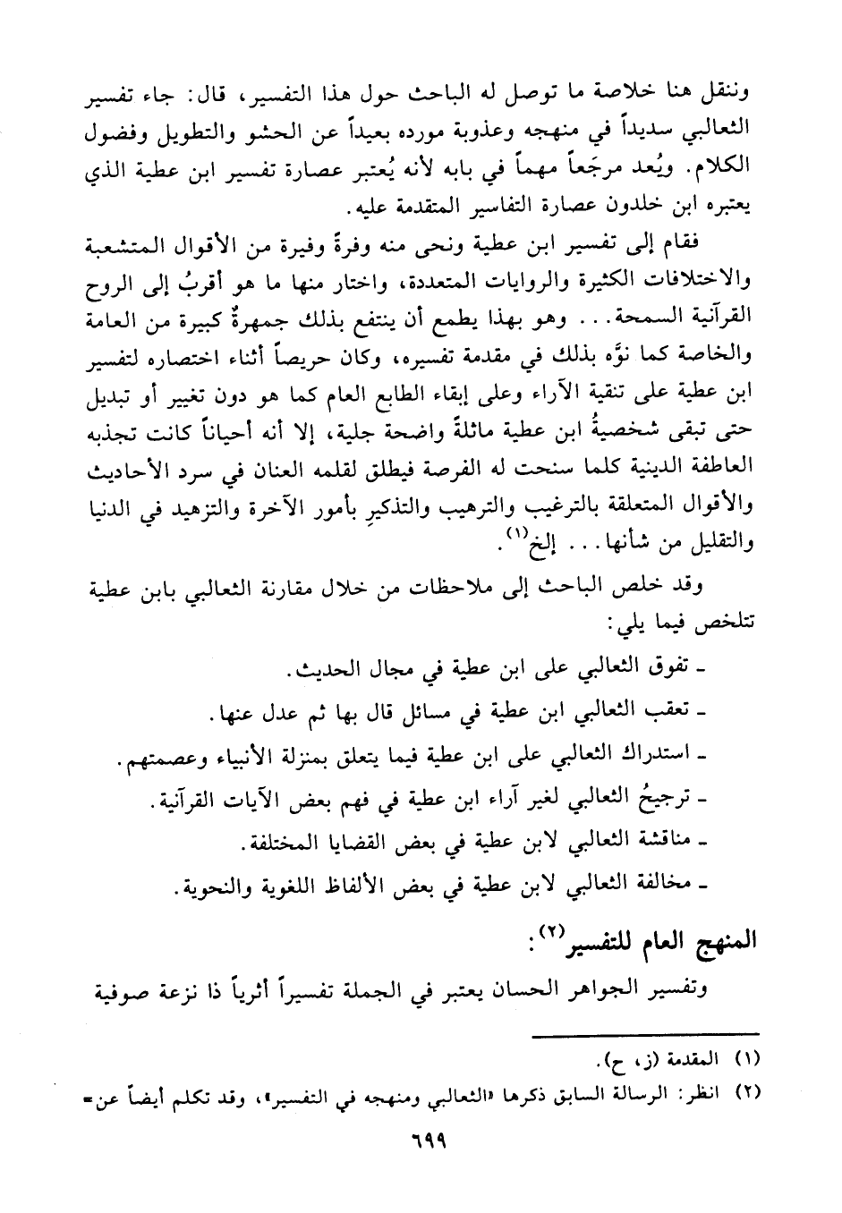 (¬2) انظر الرسالة السابق ذكرها " الثعالبي ومنهجه في التفسير"، وقد تكلم أيضا عن منهج الثعالبي الدكتور عمار الطالبي في مقدمة تحقيق التفسير (1 / ط - ت)، وكذا محمد الفاضلي 1/ 7 - 8، وتكلم عنه أيضا الفاضل ابن عاشور في التفسير ورجاله ص: 7 - 8.