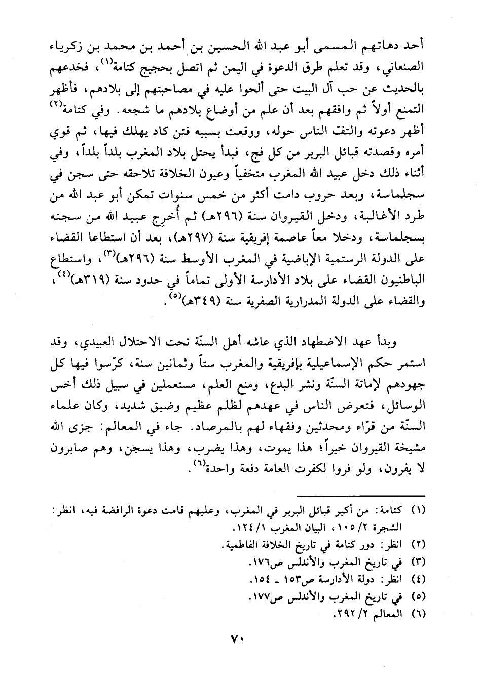 (¬1) كتامة: من أكبر قبائل البربر في المغرب، وعليهم قامت دعوة الرافضة فيه، انظر: الشجرة 2/ 105، البيان المغرب 1/ 124.