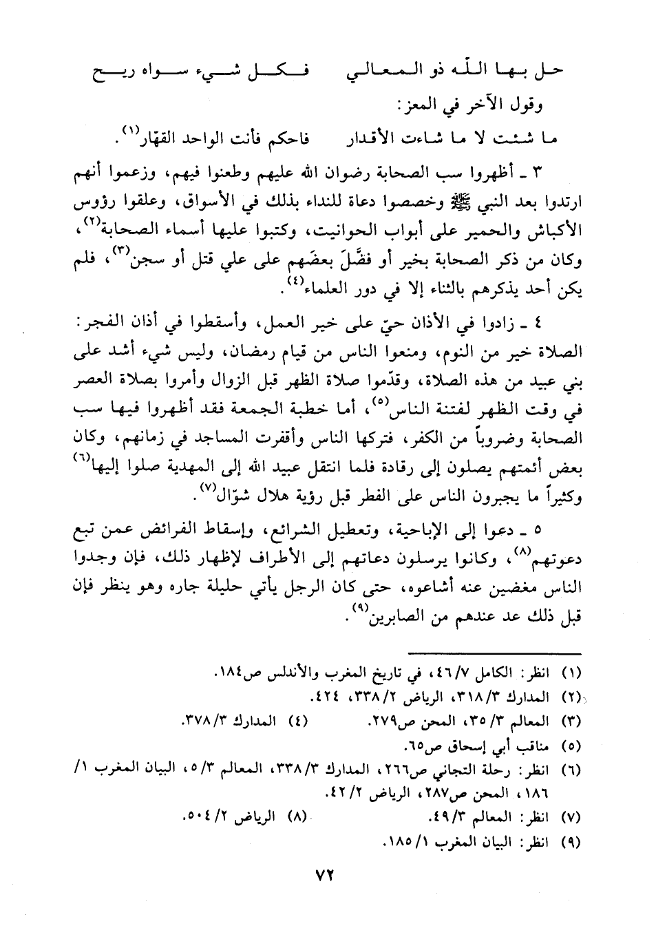 (¬6) انظر رحلة التجاني 266، المدارك 3/ 338، المعالم 3/ 5، البيان المغرب 1/ 186، المحن 287، الرياض 2/ 42.