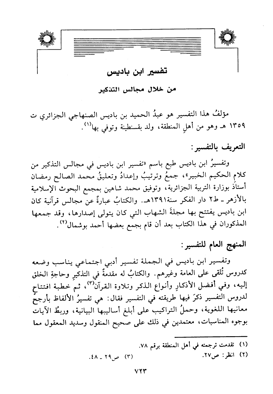 تفسير ابن باديس من خلال مجالس التذكير