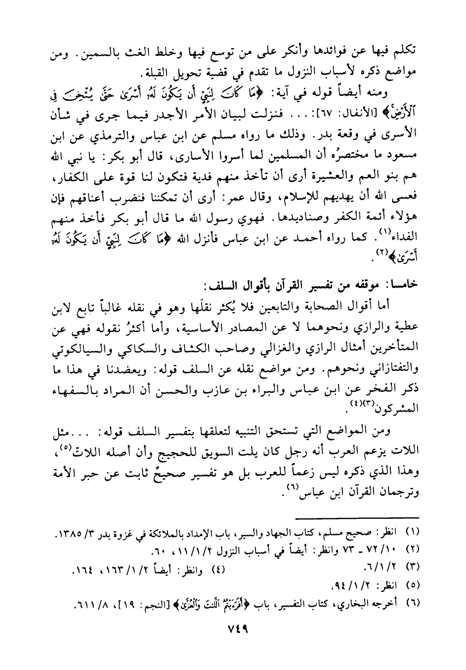 خامسا: موقفه من تفسير القرآن بأقوال السلف: