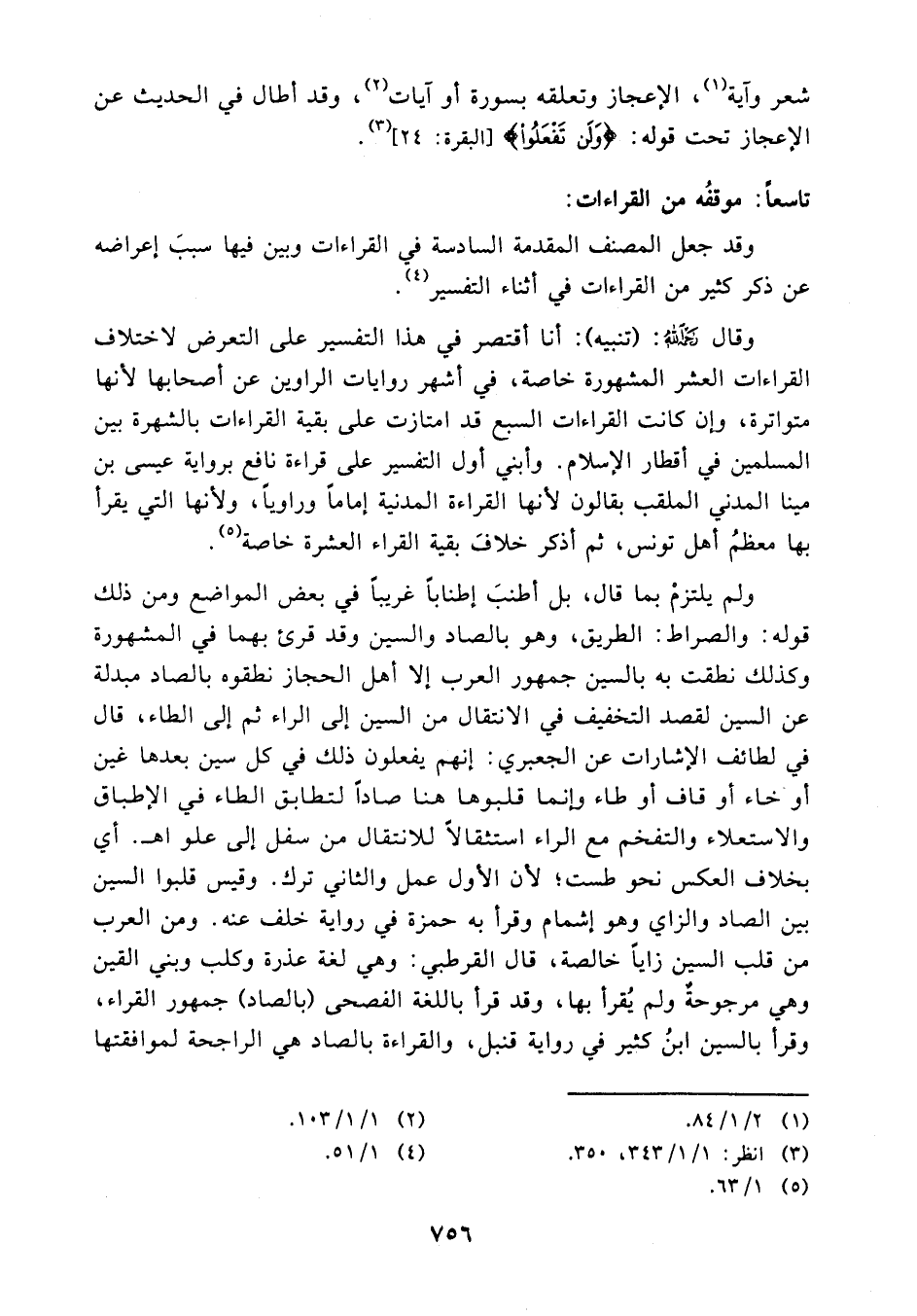 وقد جعل المصنف المقدمة السادسة في القراءات وبين فيها سبب إعراضه عن ذكر كثير من القراءات في أثناء التفسير. (¬5)