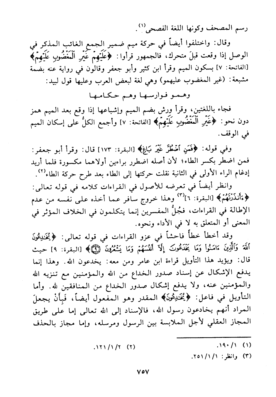 وهذا خروج سافر عما أخذه على نفسه من عدم الإطالة في القراءات فجل المفسرين إنما يتكلمون في الخلاف المؤثر في المعنى أو المتعلق به لا في الأداء ونحوه.