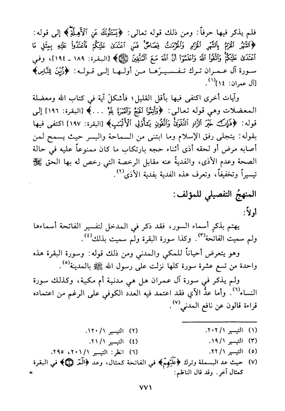 (¬10) حيث عد البسملة وترك {عليهم} في الفاتحة كمثال، وعد {الم} في البقرة كمثال آخر. وقد قال الناظم: