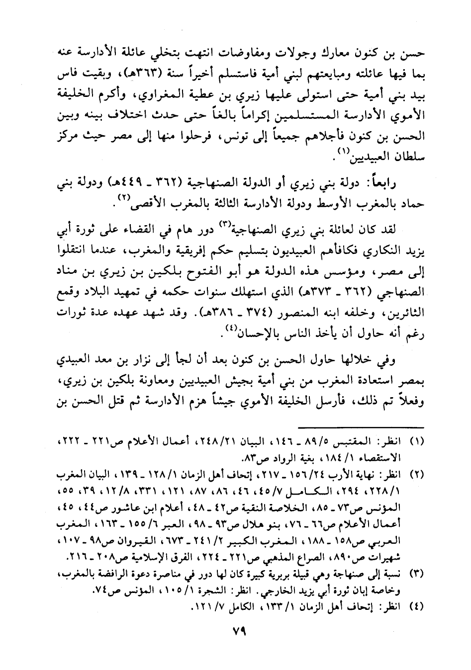 (¬3) نسبة إلى صنهاجة وهي قبيلة بربرية كبيرة كان لها دور في مناصرة دعوة الرافضة بالمغرب، وخاصة إبان ثورة أبي يزيد الخارجي انظر: الشجرة 1/ 105، المؤنس 74.