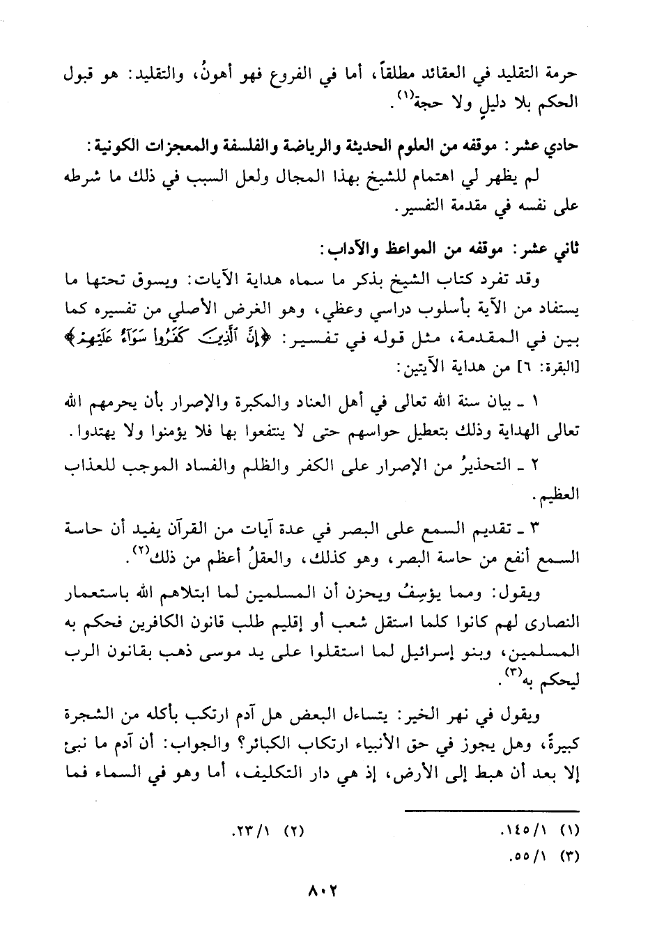 وقد تفرد كتاب الشيخ بذكر ما سماه هداية الآيات: ويسوق تحتها ما يستفاد من الآية بأسلوب دراسي وعظي وهو الغرض الأصلي من تفسيره كما بين في المقدمة مثل قوله في تفسير {إن الذين كفروا سواء عليهم} (¬2) من هداية الآيتين: