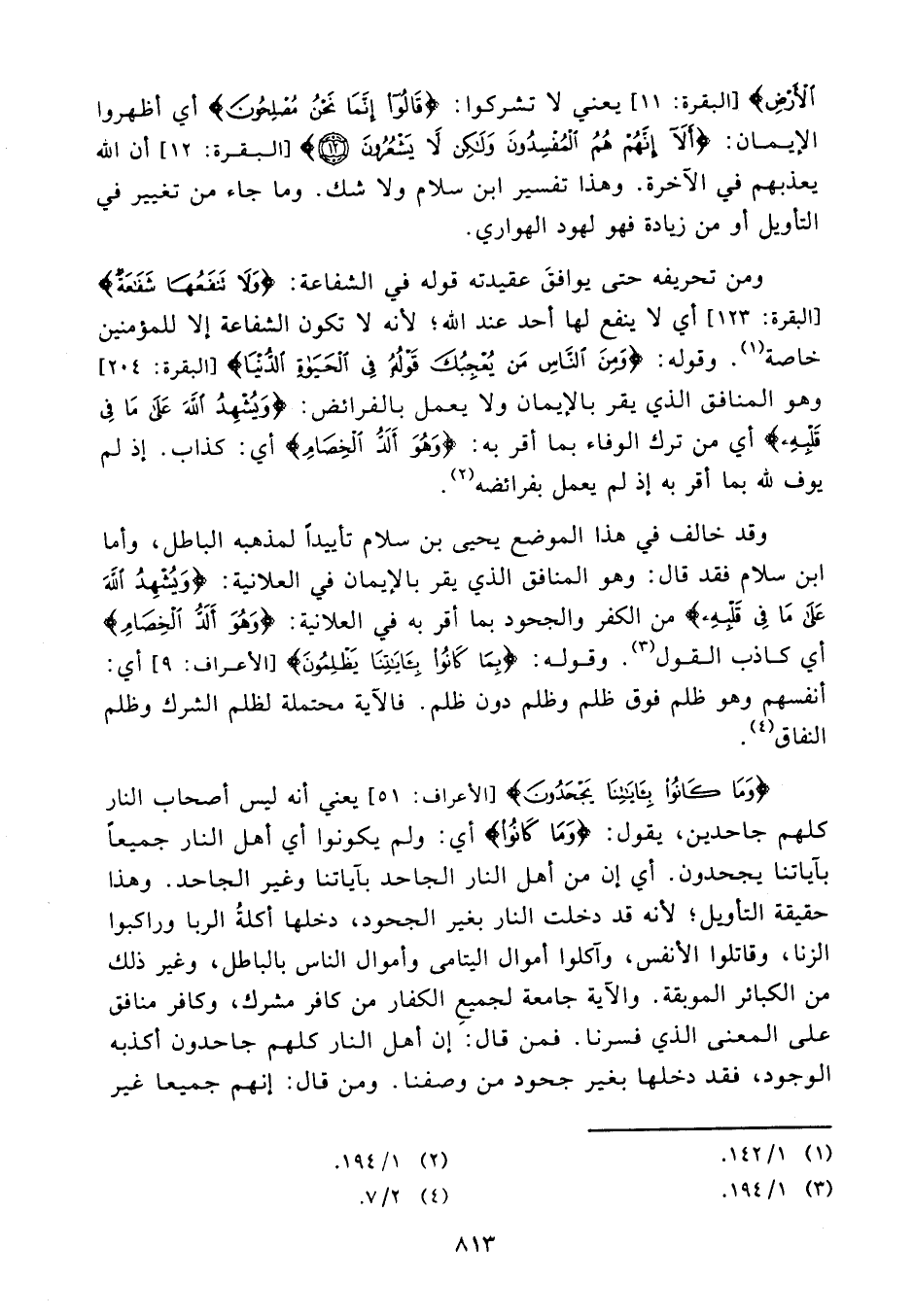 ومن تحريفه حتى يوافق عقيدته قوله في الشفاعة: {ولا تنفعها شفاعة} (¬3) أي لا ينفع لها أحد عند الله لأنه لا تكون الشفاعة إلا للمؤمنين خاصة. (¬4)