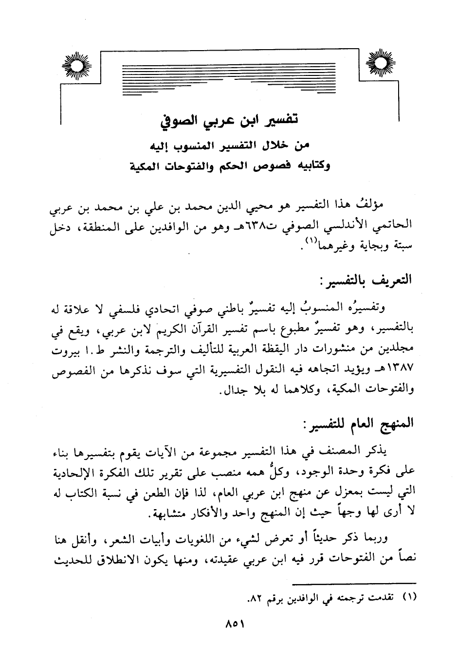تفسير ابن عربي الصوفي من خلال التفسير المنسوب إليه وكتابيه فصوص الحكم والفتوحات المكية
