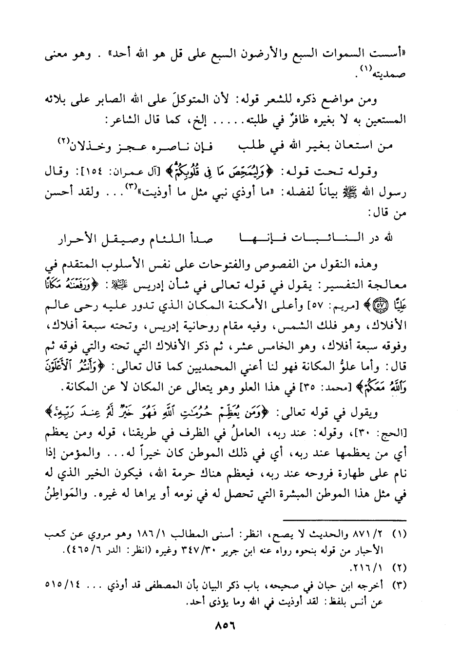 (¬1) 2/ 871 والحديث لايصح انظر: أسنى المطالب 1/ 186 وهو مروي عن كعب الأحبار من قوله بنحوه رواه عنه ابن جرير 30/ 347 وغيره (انظر الدر 6/ 465).